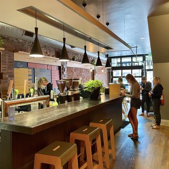 A refurbished house located near the University of Denver campus off of Pearl St., Stella’s Coffee Haus is a gem that is well worth the trek across the Denver metro. Bolstering large amounts of seating for large 6-8 person parties, medium 3-5 person parties, and smaller 1-2 person parties, this artsy-style shop is a great choice for just about any type of study group. Stella’s offers great choices from the classic drinks such as Cold Brew, Iced Tea and Dirty Chai Lattes, in addition to their customized seasonal menu of tasty beverages, paired, of course, with their supply of locally baked goodies to enjoy with your drink. The shop offers one of the most interesting atmospheres with pastel colored rooms decorated with locally auctioned artwork from Denver artists and a small collection of donated “free-to-take” books for you to enjoy if you’re not in the studying mood. When exiting the main pastel spaces, you have the option of indoor exposed-brick seating filled with parallel running small duo tables, bar seating for smaller parties, or porch seating (yes, quite literally on the shop’s porch) for the enjoyers of outdoor weather. This spot offers a quieter space for one to enjoy in the small and quaint neighborhood of “South Pearl Street”.